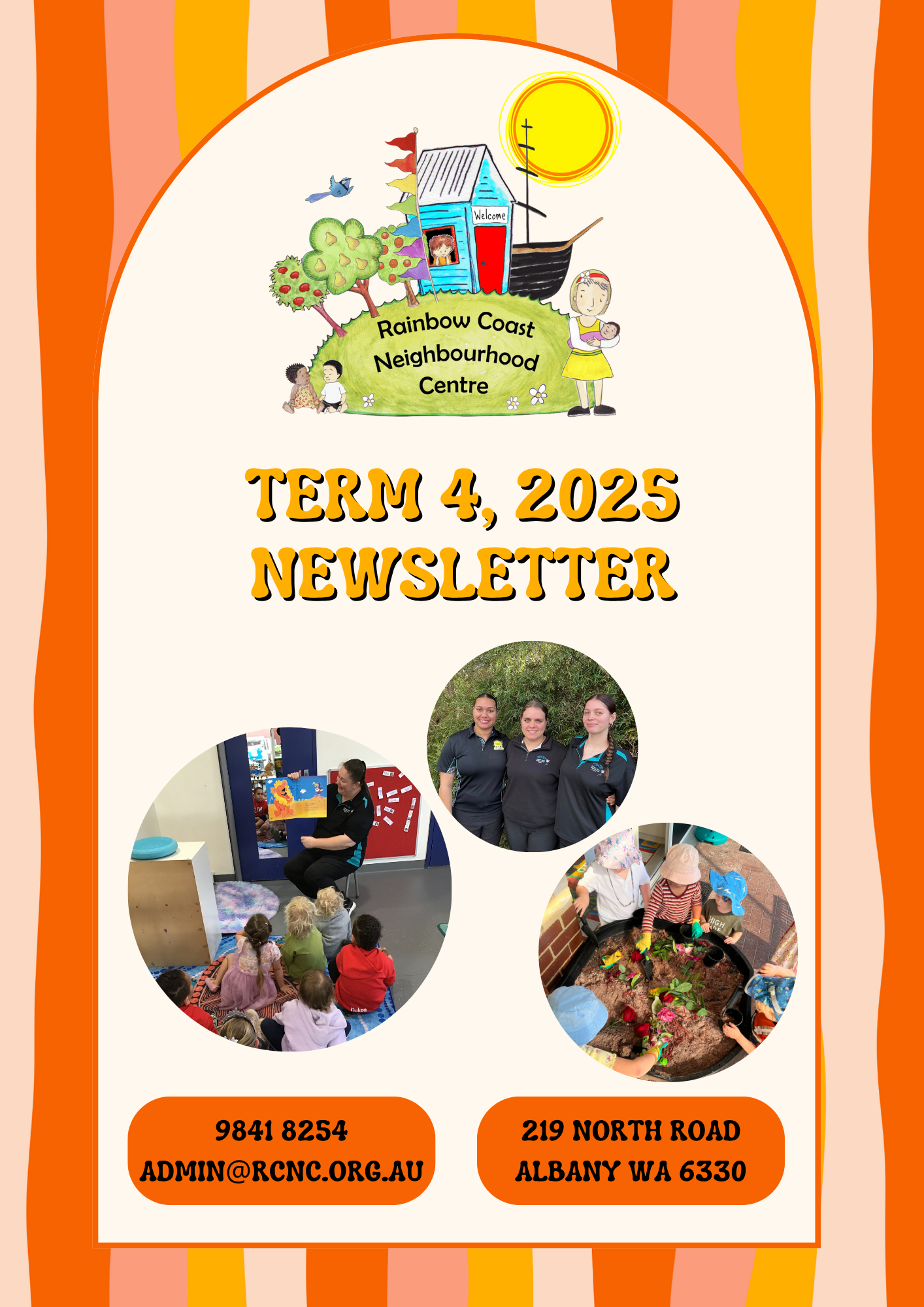 Our "RCNC Newsletter" (click blue writing) published at the beginning of each school term - filled with activities/groups/programs and information for Great Southern community, as well as fun interactive programs/groups for children under school age.